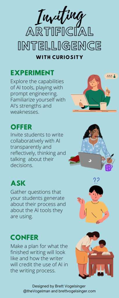 Four basic steps can help us maintain a stance of curiosity as we teach students to write in the age of AI.